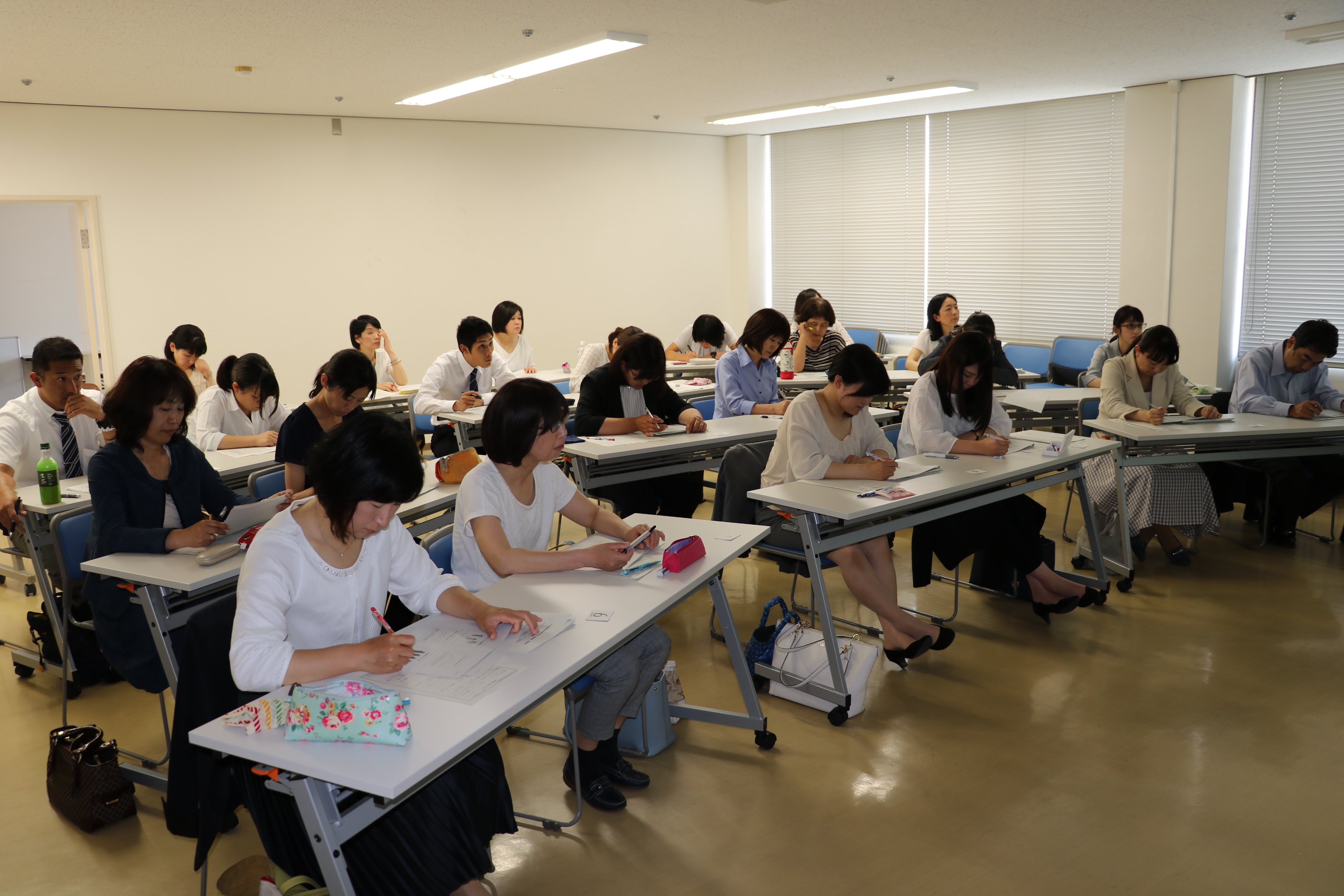 研修を受けた先生方からは、「日々の行動、言動、服装なども見られているということを気をつけていかなければならないと強く思った。」「午後の演習では他の学校の先生方とも情報交換することができ、明日からの指導に生かしていきたい。」「どんな教師になりたいかという気持ちを明確にし、目の前の子どもとしっかり向き合うこと、学力向上のために「課題づくり・話し合い・ふり返り」を充実させることを中心に取り組んでいきたい。」などの前向きな意見が聞かれました。