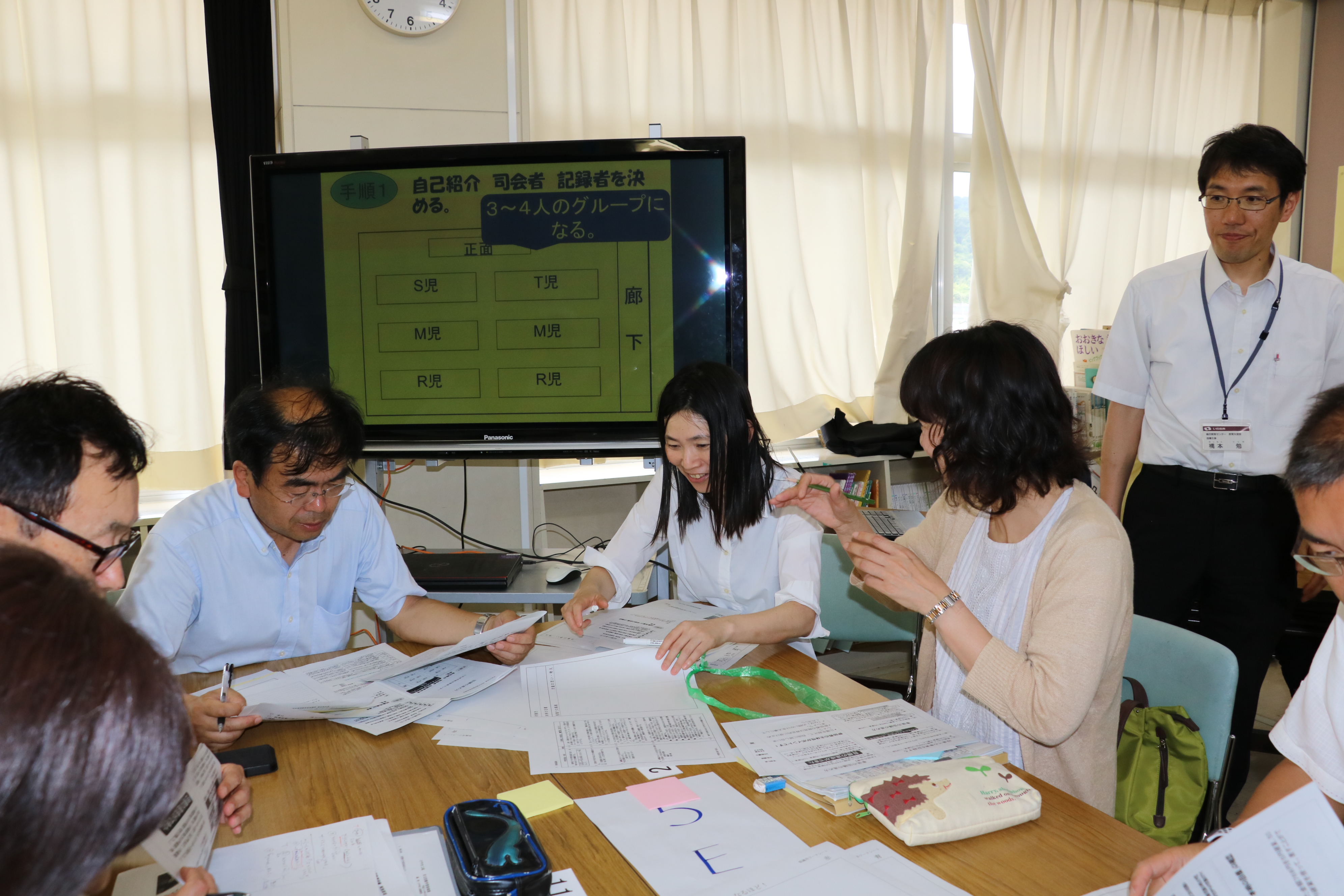 前半は、「交流の予定の伝え方」の授業を参観しました。また、後半は小グループに分かれて、参観した授業についての協議を行いました。受講した先生方は予め共有した「授業参観の視点」に沿って活発に意見交換を行いました。