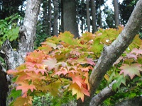 外に出てみたところ,体育館の近くのもみじが,うっすらと赤く色づき始めていました。