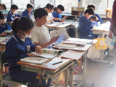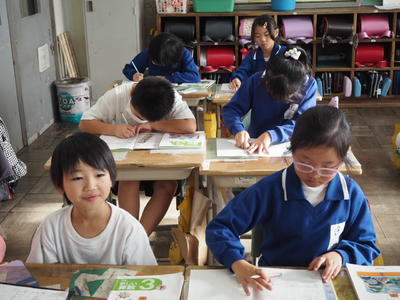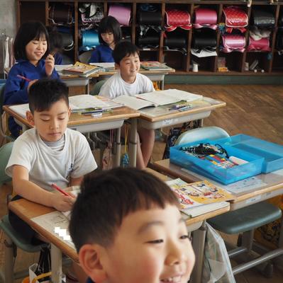 1年、国語「ほんは ともだち」。教科書んい載っている体躯さんの昔話の絵を見て、自分が知っている「むかしばなし」を紹介してくれるお友達が、いっぱいです。