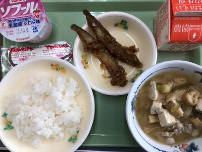 ごはん    牛乳    ししゃもの南蛮漬け    ご汁    いちごヨーグルト
