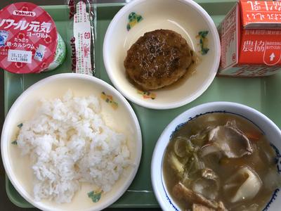 2018年11月20日 11時57分ごはん 牛乳 とうふハンバーグ・青じそおろしソースかけ ほうとう ヨーグルト