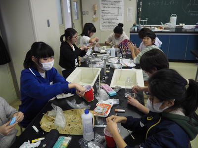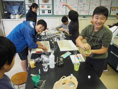 5年、理科「もののとけ方」。水溶液を熱して水を蒸発させると溶けていた物を取り出すことができるかを調べて,まとめています。