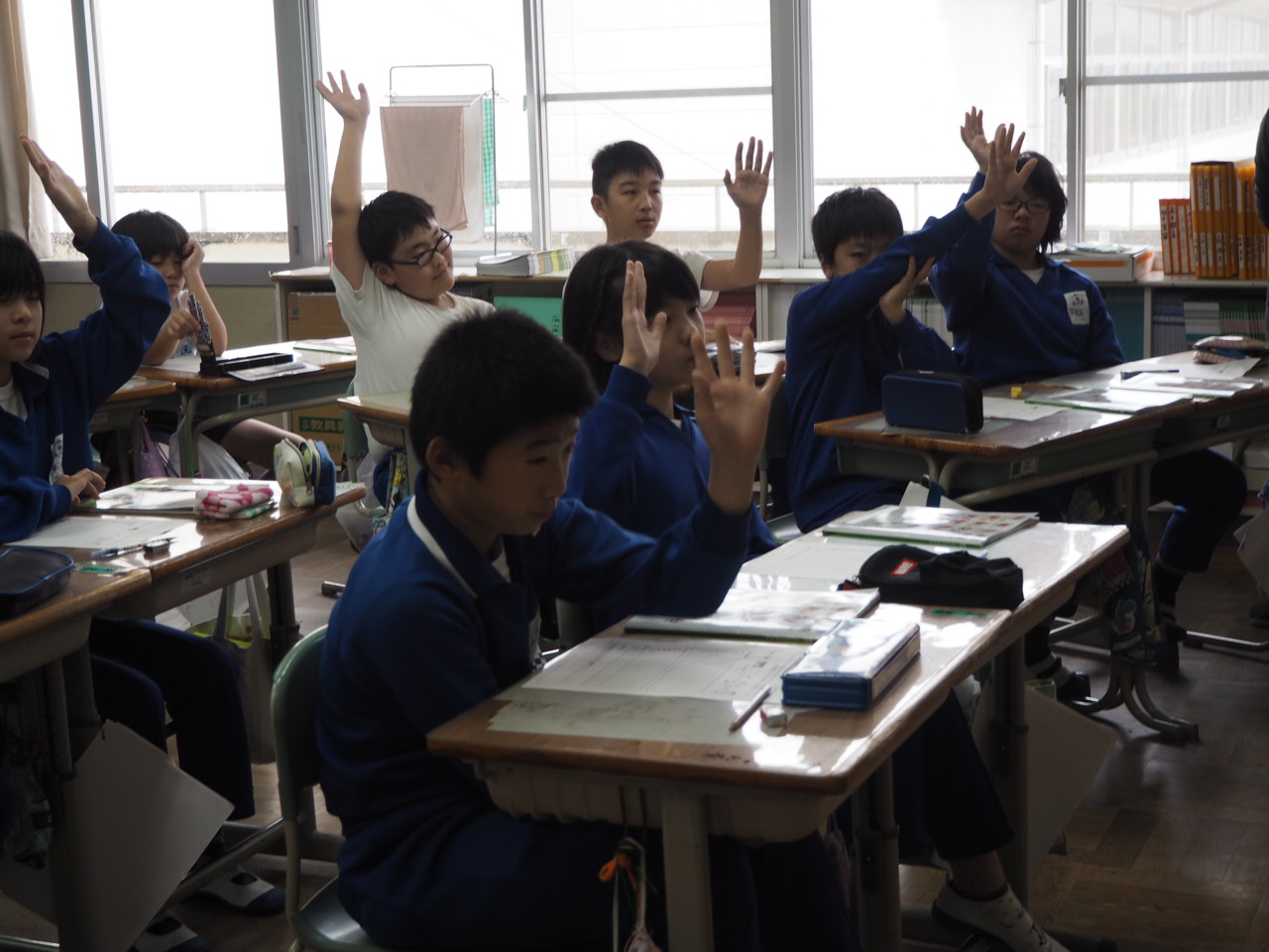 5年、食育指導「栄養素の働きと食生活について考えよう」。1年生に続き、栄養士さんに「食育指導」を行って頂きました。朝食調査も行っていましたね。