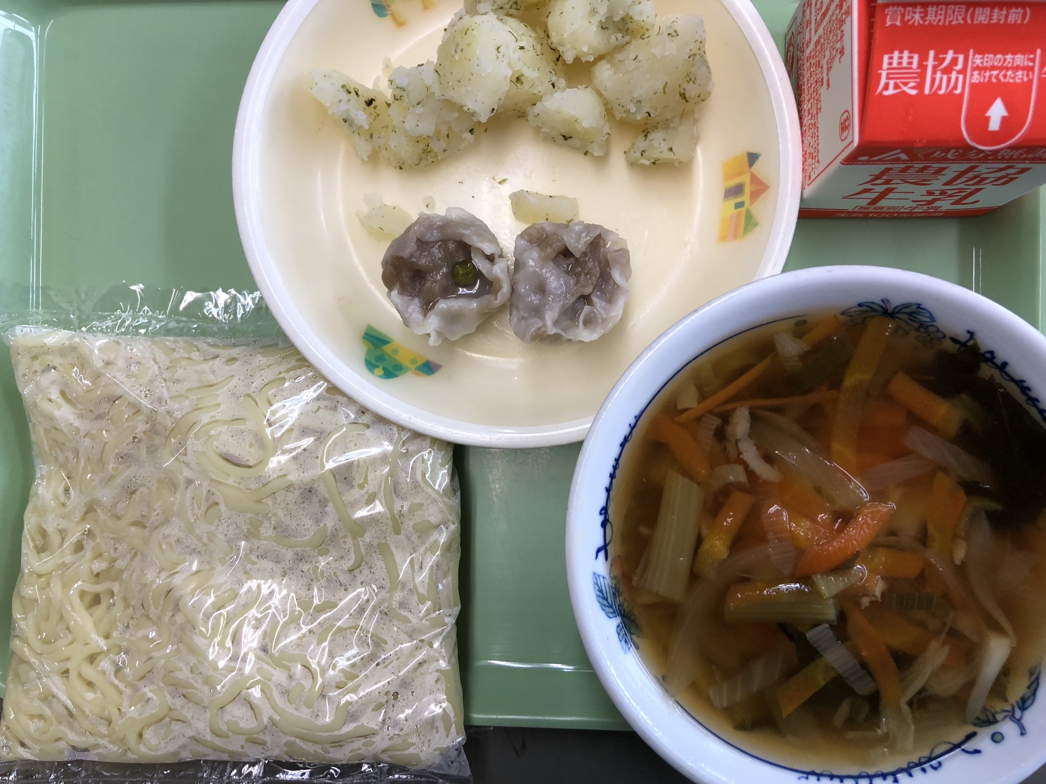 2018年11月9日 12時32分しょうゆラーメン 牛乳 ポークシュウマイ 青のりポテト