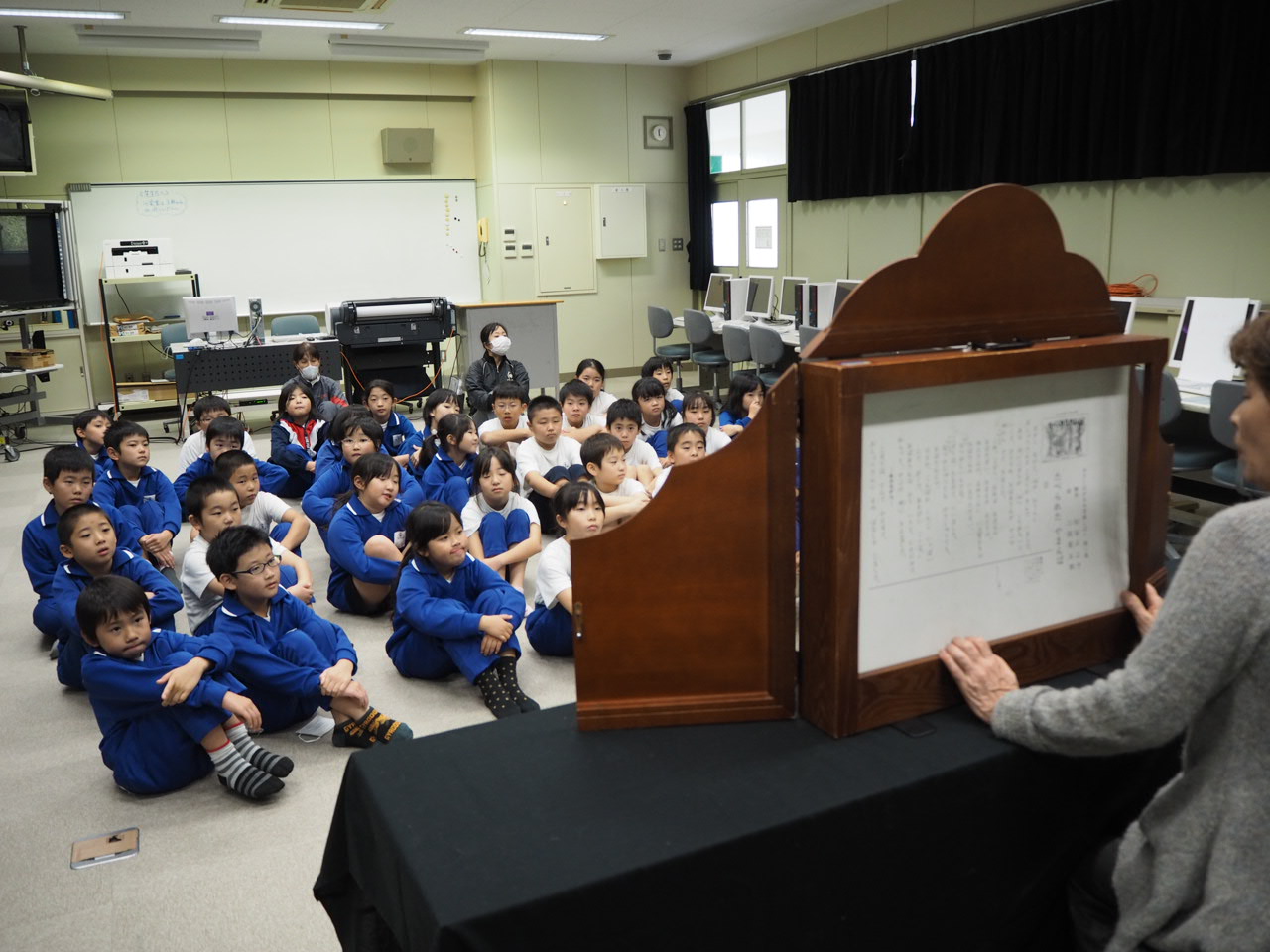 2018年11月12日 11時45分本日、外部講師を3名お招きしての「読み聞かせ会」を実施しました。本の内容に吸い込まれるように聞き入っていました。