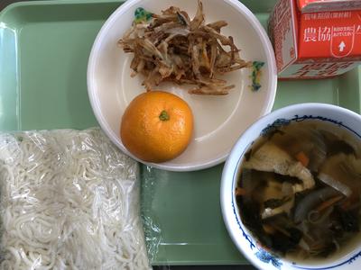 2018年11月16日 12時43分きつねうどん 牛乳 カミカミかきあげ みかん
