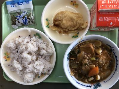2018年11月19日 13時38分雑穀ごはん 牛乳 とり天 マーボーだいこん 青のり小魚