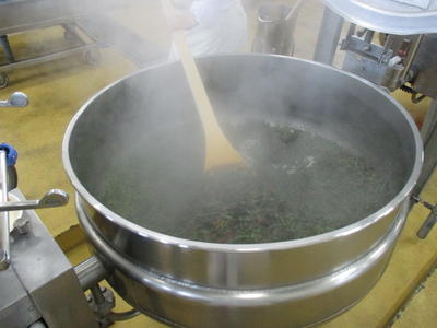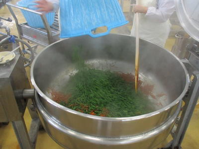 調理員さんが一本一本カットし、歯ごたえを均一にするため太いも のから先に茹でるなど工夫して作りました。