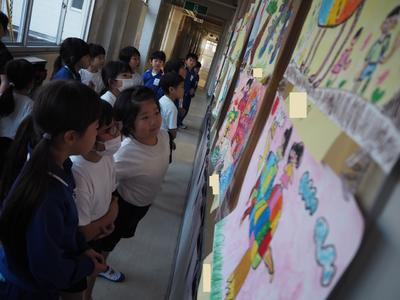 2018年12月4日 14時06分1年、図工でみんなが描いた作品の鑑賞会を行っていました。お友達の良いところをたくさん見つけられるといいですね。