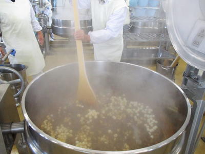 小豆の水煮を30分煮てあんこを作り、かぼちゃと白玉を加えまし た。甘さがちょうどよく