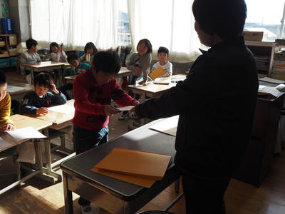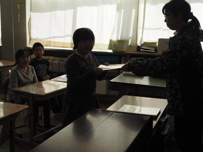2018年12月21日 10時46分今学期最後の学級活動を行いました。先生のお話の後、楽しみ?な「通知表」が渡されました。