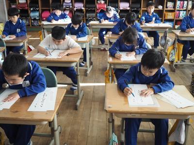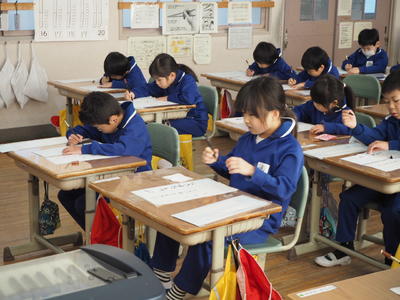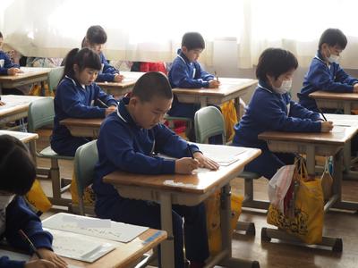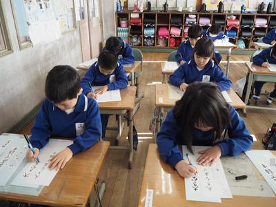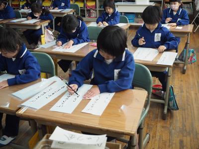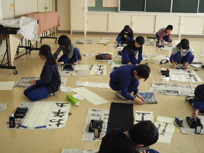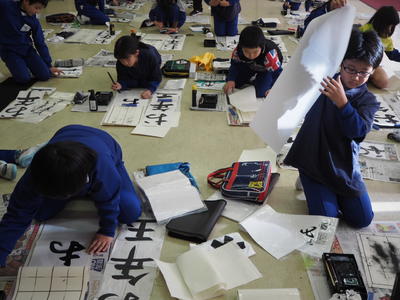 2019年1月9日 12時10分今日と明日に分けて「校内書き初め大会」が実施されます。本日行った学級学年を掲載します。皆、一生懸命集中して書いていました。素晴らしい作品に仕上がりました。
