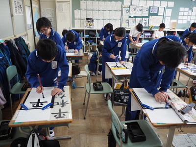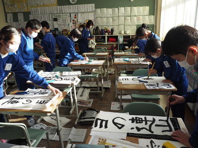 2019年1月10日 11時02分校内書き初め大会を昨日と今日で実施しました。本日行った学級学年を掲載します。