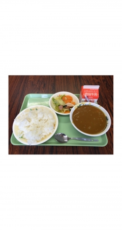 今日は、チキンカレーライス・ウィンナーとキャベツのソテー・牛乳です。熱量は838kcalです。今日も美味しくいただきました。