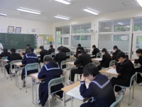 今日は全国一斉に「全国学力・学習状況調査」を実施しています。国語A・国語B・数学A・数学B・理科・生徒質問紙の順に行われます。現在は1校時の国語Aに真剣に取り組んでいます。がんばれー 赤井中3年生!!