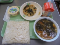 今日は、ソフトめん・わかめかけ汁・菜の花かき揚げ・牛乳プリン・牛乳です。熱量は、818kcalです。今日も美味しくいただきました。