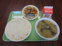 今日は日本型食事献立で、ご飯・さんま生姜煮・タケノコのおかか煮・なめこと小松菜の味噌汁・牛乳です。熱量は744kcalと今月の献立の中で最もヘルシーです。今日も美味しくいただきました。