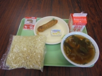 2015年5月14日 13時18分 今日は、醤油ラーメン・ひじき春巻き・チーズ・ミルメーク・牛乳です。熱量は832kcalです。今日も美味しくいただきました。