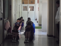 校医さんに来ていただき、歯科検診を行っています。廊下で待つ様子も素晴らしいです。