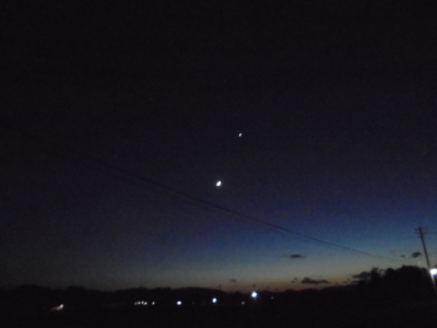 部会の協議は遅くまでかかりました。退勤時に西の空に月とある天体が見えた