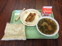今日は、醤油ラーメン・しそ餃子・チーズかまぼこ・牛乳です。熱量は808kcalです。今日も美味しくいただきました。