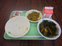 今日は、ご飯・ドライカレー・わかめスープ・ミルメーク・牛乳です。熱量は752kcalです。今日も美味しくいただきました。