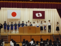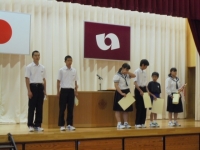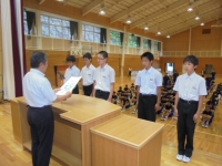 2015年6月19日 15時43分 各種大会や中体連大会の賞状を伝達しました。終了後の全校集会では生徒会本部役員とスポーツデー実行委員からの
