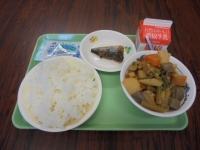 今日は、ご飯・サバの味噌煮・小女子(こうなご)・筑前煮・牛乳です。