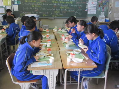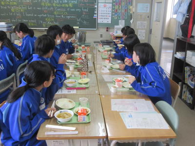 2年1組の給食の様子です。