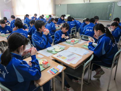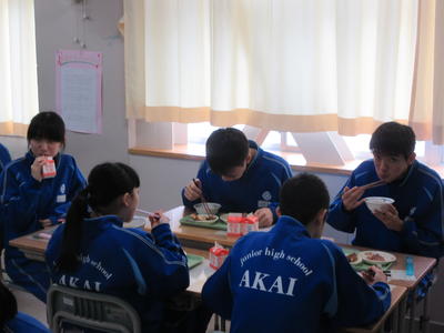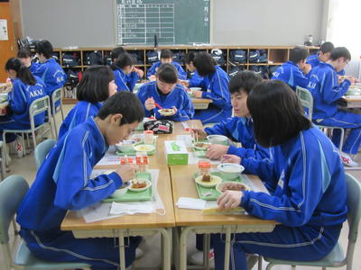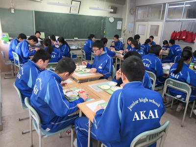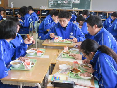 3年生も明日が最後の給食です。友達と味わって食べていました。