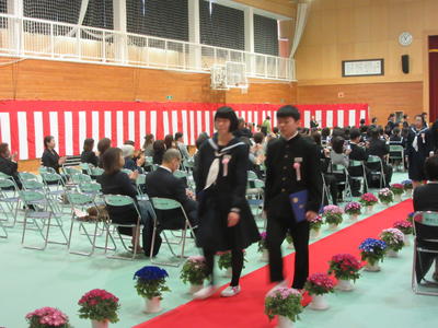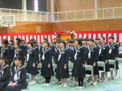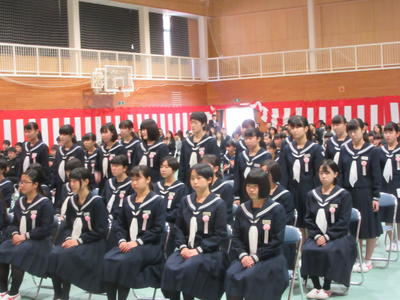 卒業生はもちろん、在校生の参加態度や歌も素晴らしく、厳かな中にも暖かい思いが感じられ、卒業生の心に残る卒業式になりました。