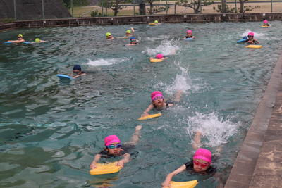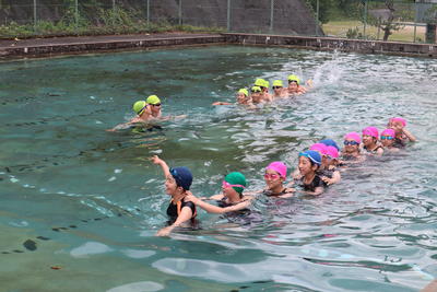 2019年6月25日 12時15分今日の4校時に「プール開き」を行いました。今年度赤井中で最初にプールに入った学級は、1年2組でした。生徒たちは、水の中の方が温かそうにしていました。水泳は、筋力や心肺機能を高める上でとても効果がある運動です。安全に留意しながら、一人一人が目標をもって水泳学習に取り組んでほしいと思います。