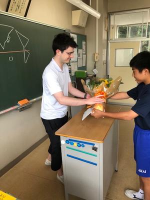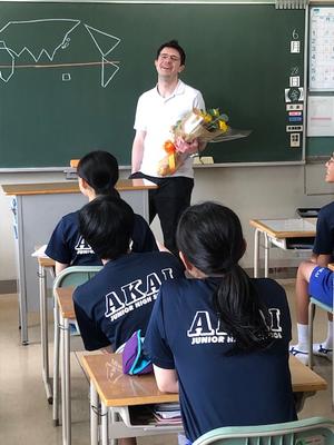2019年7月1日 09時27分先週28日(金)は、ALTのMartin Roberts(マーティン・ロバーツ)先生の、赤井中への訪問最終日でした。マーティン先生には、5年間いわき市でALTとして英語を教えていただきました。8月に地元イギリスに戻り、9月から大学院でスピーチ・セラピーの勉強をするそうです。マーティン先生、今までありがとうございました。