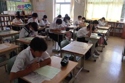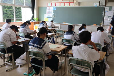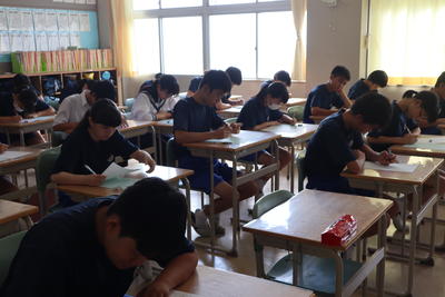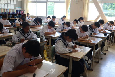 2019年7月10日 09時28分今日は、第2回基礎学力コンテストがありました。教科は、数学です。約1週間前に配付したプリントから同じ問題が出題されます。どの学級も合格を目指して真剣に取り組んでいました。