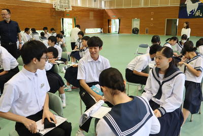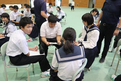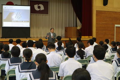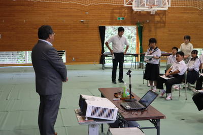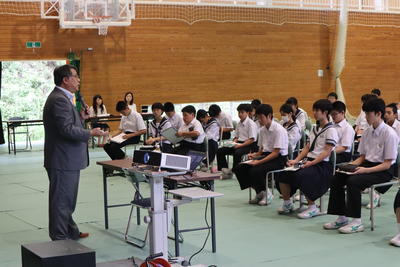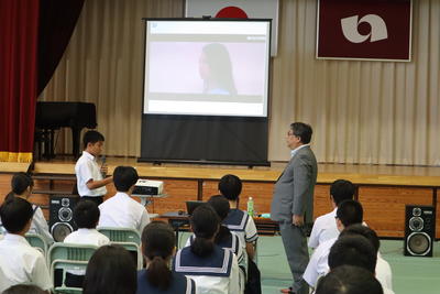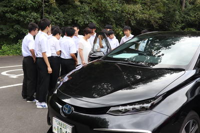 2019年9月13日 18時35分今日は、5・6校時にわくわく仕事塾「地域の先輩から学ぶ」の2回目の講演会を行いました。いわき市常磐西郷にある東洋システム株式会社社長の庄司秀樹さんを講師にお招きし、その生い立ちから会社を起こしたきっかけ、そして会社経営という実体験を通して、人として生きていく上で何が大切か、今中学生として何を頑張ればよいかなど、ためになるお話をたくさんしていただきました。生徒たちも興味をもって真剣に話を聞き入っていました。最後に、燃料電池車も見せてもらいました。