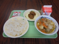 今日は、麦ごはん・白ごまつくね・肉じゃが・ミルメーク・牛乳です。