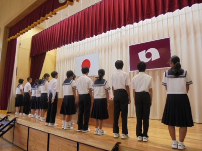 終業式に先立ち、たなばた展、英語検定、基礎学力コンテスト、国民安全の日校内標語コンクール、いわき北地区中学生弁論大会の賞状伝達を行いました。