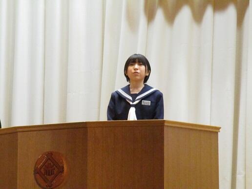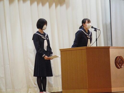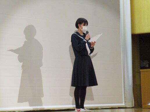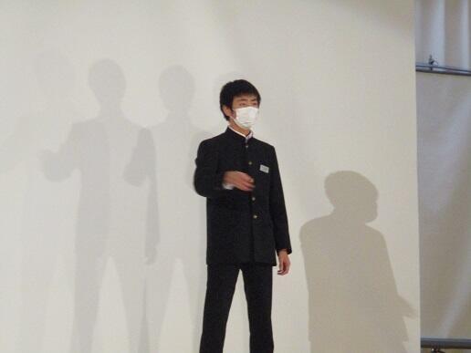 英語弁論発表。本来であれば各学校の代表生徒が一同に会して英語弁論大会が開催されるのですが、今年度は新型コロナウィルスの影響で、学校で撮影したものを審査するという異例の開催方法で実施。みんなの前でその努力を披露させたい・・・という英語科の先生の希望もあり、今回全校生徒の前で発表です!良かったね!