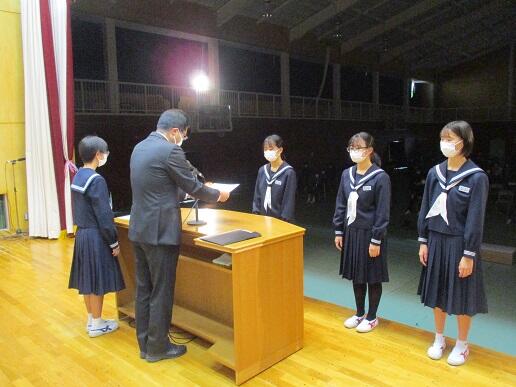 スローガン・シンボルマークの表彰です。今年度のシンボルマークは2人の案を組み合わせたものが採用されたので、2人とも表彰されました。ありがとう&おめでとうね!