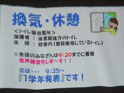 ここで休憩。休憩時間をしっかりと確保し、その間実行委員が全ての扉を開放して換気をします。各学年が終了する毎に換気を行い感染防止に努めました。