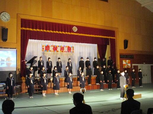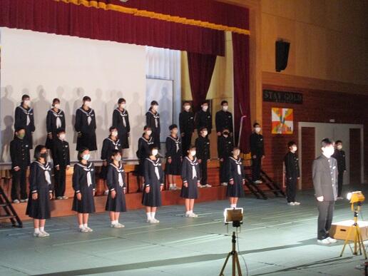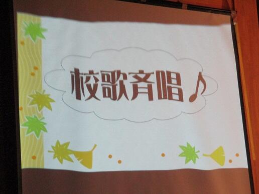 各学年の発表の前に校歌斉唱。ここでしっかりと声を作ります