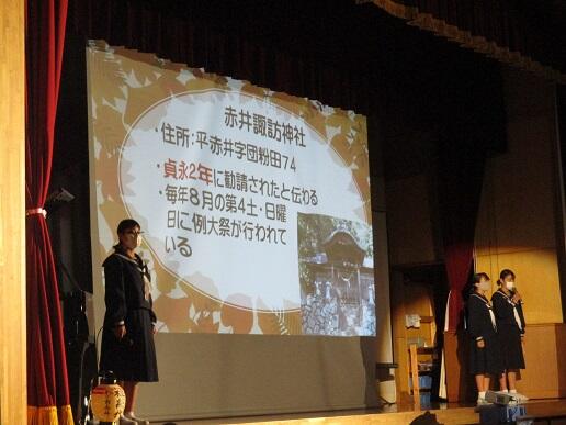 1年生の総合の発表。赤井の地域について学んだことを発表しました。それぞれが長い文章をほとんど暗記!いやいや感心しました!