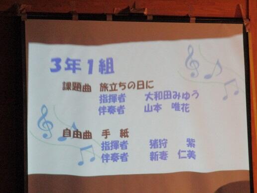 3年生の合唱発表。やっぱり3年生、声の質が良かった!少ない時間でよく頑張ってました!