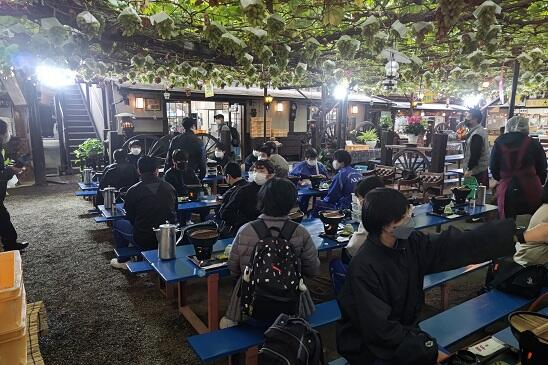 リニア見学センターを出発し、次の目的地である「一古園」に到着しました。ここで昼食となります。メニューは山梨名物「ほうとう」です!