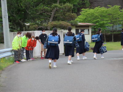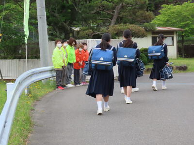 2023年5月19日 18時23分19日(金)、地元の婦人会、見守り隊の皆様があいさつをしに校門へ来てくださいました。おはようございます、の呼びかけに、生徒たちも、おはようございます、と応えることができていました。