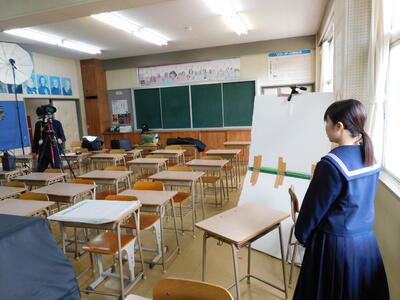 3年生は、卒業アルバムの個人撮影と授業風景の撮影をしました。個人撮影では、なかなか笑顔をつくることができず、中には30枚程度撮影した生徒もいました。カメラマンさんの協力で、みんな素晴らしい笑顔の写真を撮ることができました。また、クラスの授業風景も撮影しました。自然な授業風景を撮影したかったのですが、カメラを向けるとどうしてもカメラ目線になってしまうようです。生徒にとって自然体は、かなり難しいようです。