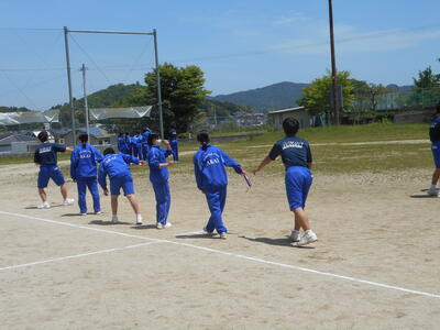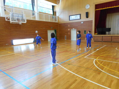 3校時は1組,4校時は2組で体育の授業が行われました。明日の学年体育祭に向けて、ミニバレーボールの練習やバトンパスの練習をしている姿が見られました。体育祭のスローガンを達成するために、一生懸命協力して活動していました。明日の体育祭で、各クラス一致団結して頑張ってほしいと思います。