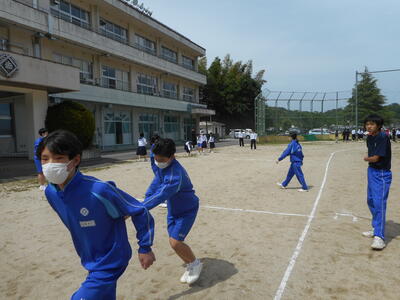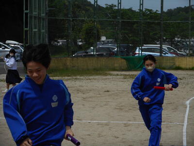 校庭では、昼休みの時間を利用して、体育祭のリレー練習を行う姿が見られました。明日の体育祭が楽しみです。