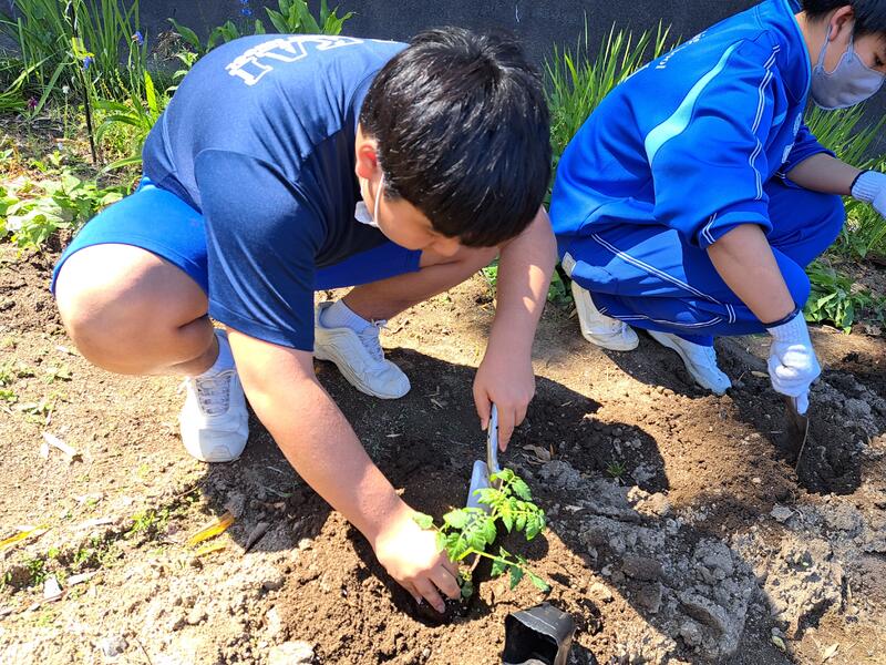 2年生の技術の授業では、トマトの苗植えを行いました。